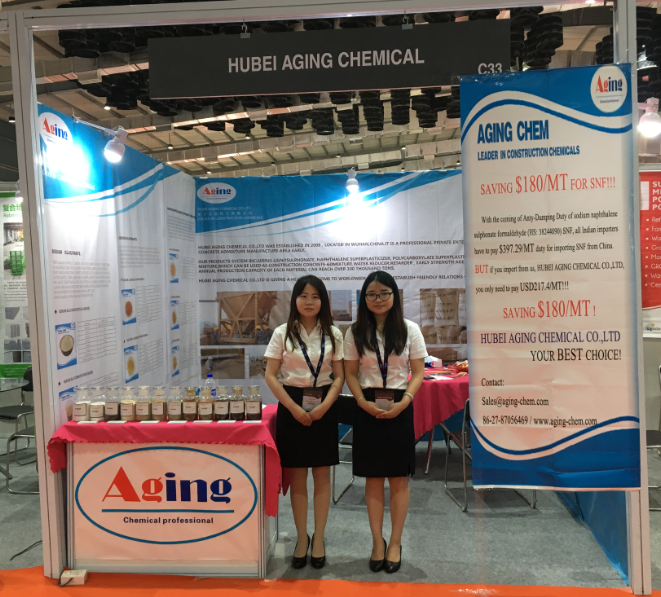 As we know,this year India customs began to charge anti-dumping duty for SNF,the exporting business becomes very hard for China suppliers,under this tough situations,we,Hubei Aging Chemical Co.,Ltd still insist to attend the Concrete Show In India The Concrere Show as held at the Bombay Convention&Exhibition Centre from 24th,May to 26th,May, which attracted more than 200 exhibitors from all over the world. With nearly 10,000 professional buyers, it is a professional exhibition in the field of concrete construction in India.